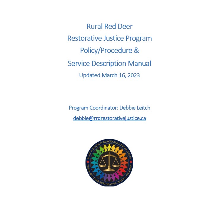 The Rural Red Deer Restorative Justice Policy Procedure and Service Description Manual provides detailed information on the structure, vision, goals, processes, resources, forms and documentation requirements that you will need to be aware of.