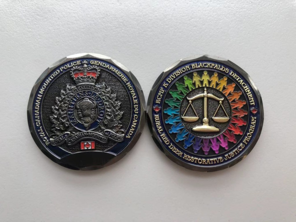 You can support the Rural Red Deer Restorative Justice Program by purchasing a Limited Edition Commemorative RCMP Challenge Coin. This beautifully designed coin features the Rural Red Deer Restorative Justice logo on one side and the Blackfalds RCMP K division logo on the reverse. Only 400 coins have been produced. Each has its unique limited edition number. These are collector coins termed “Challenge Coins” by RCMP members as they are not only beautiful to have on display but enable the holder to challenge other members at RCMP events.